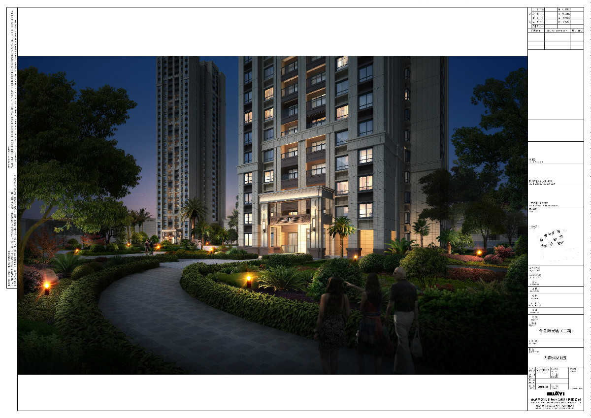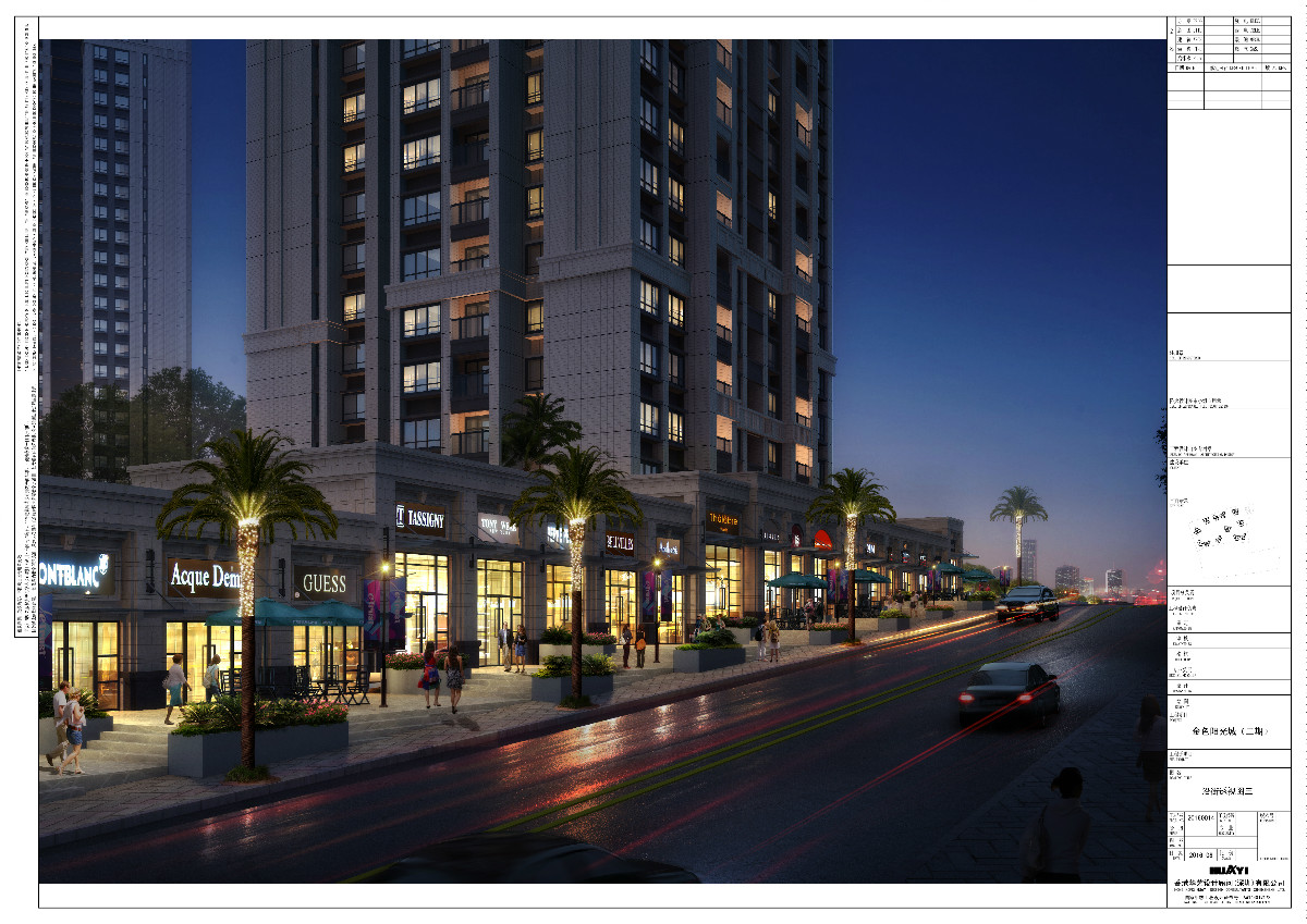 整個(gè)地塊西高東低,北高南低,西北角最高,采用從西向東坡度為1.79%的大斜板方式找平地面,二期規(guī)劃有10棟高層13個(gè)單元,全部沿地塊周邊(街邊)布局,退道路紅線15米,中間留出較大中庭,景觀視野開闊,西面和北面的建筑沿街1樓結(jié)合地形的高差做成了1-2層的底商。